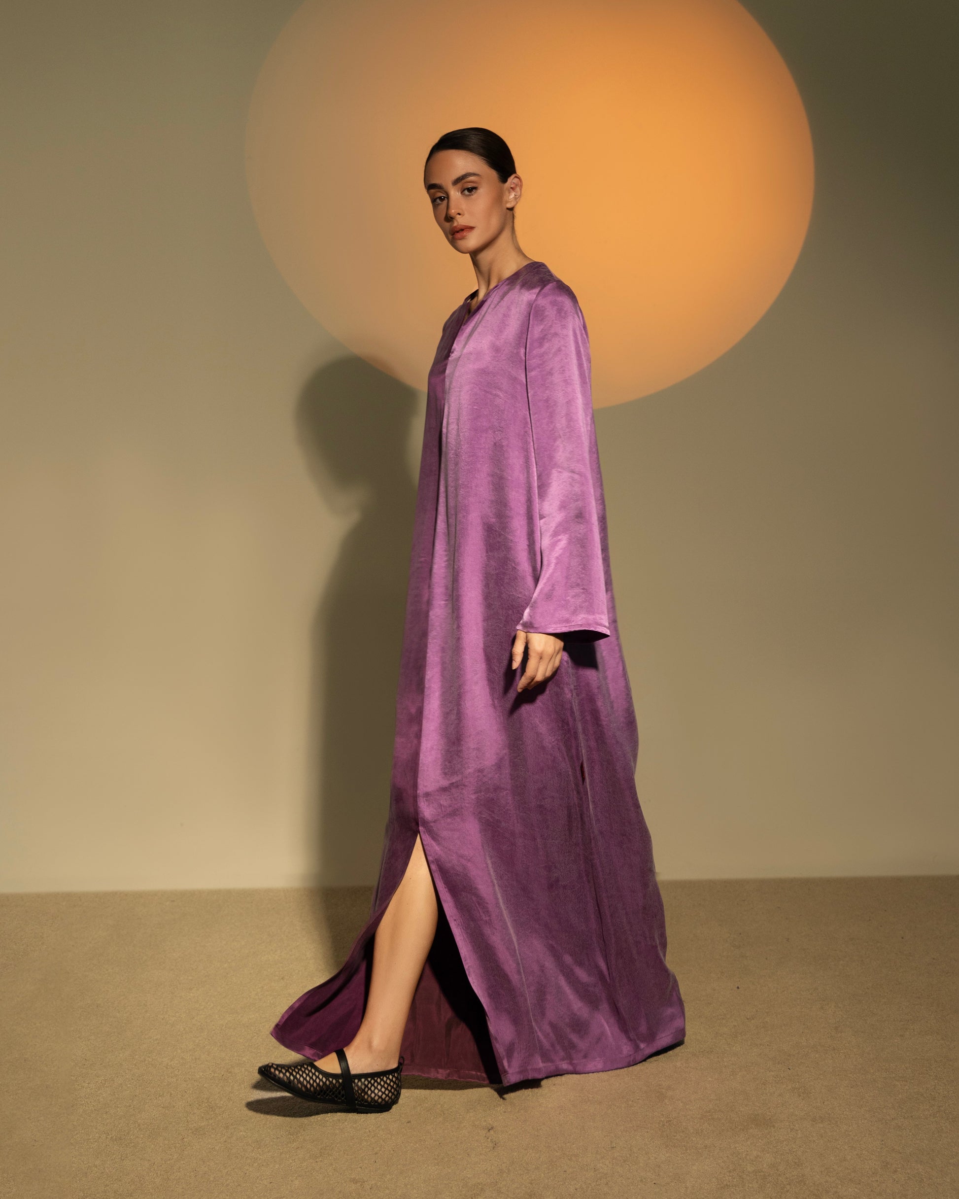 A two-tone caftan with a modern asymmetric design. Designed for a relaxed and effortless fit.